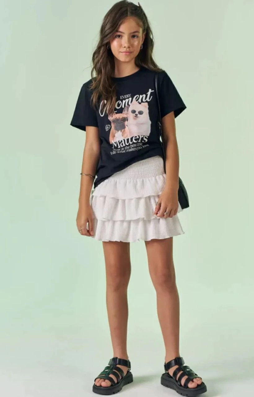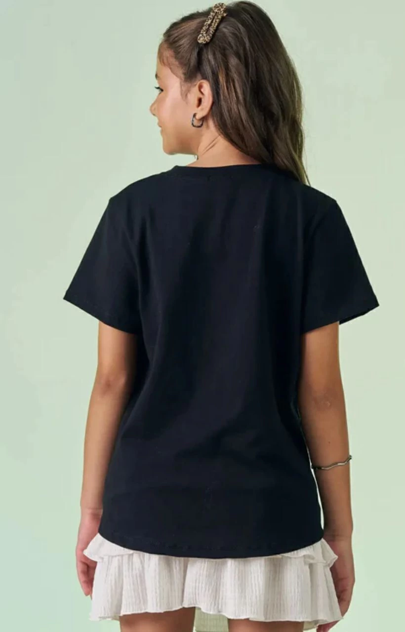 A camiseta comfy em meia malha, é a peça perfeita para as meninas que amam um look cheio de estilo! Esta peça é perfeita para as meninas que adoram um estilo despojado e cheio de personalidade! A estampa divertida e o DTF, adicionam um charme especial à peça.
