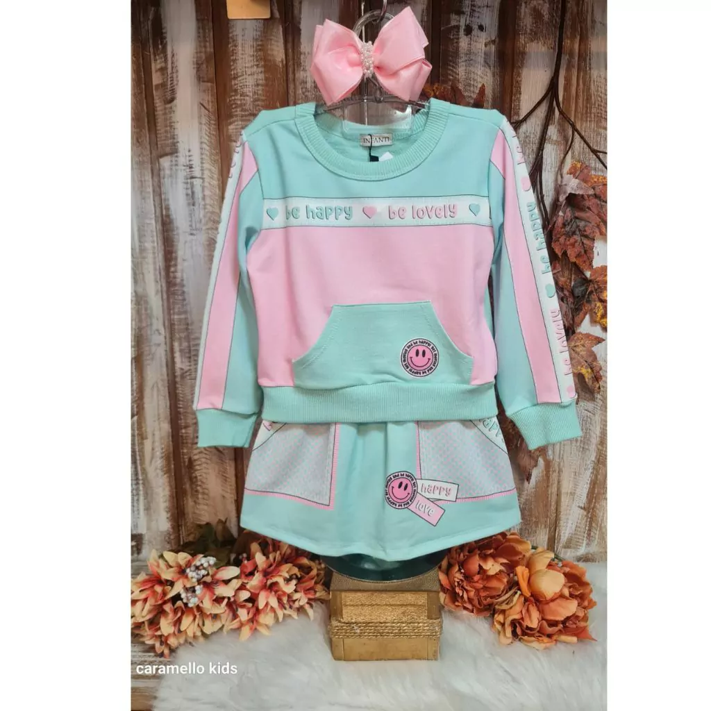 Composição Conjunto Infantil Kukiê com Shorts Saia e Blusa Manga Longa