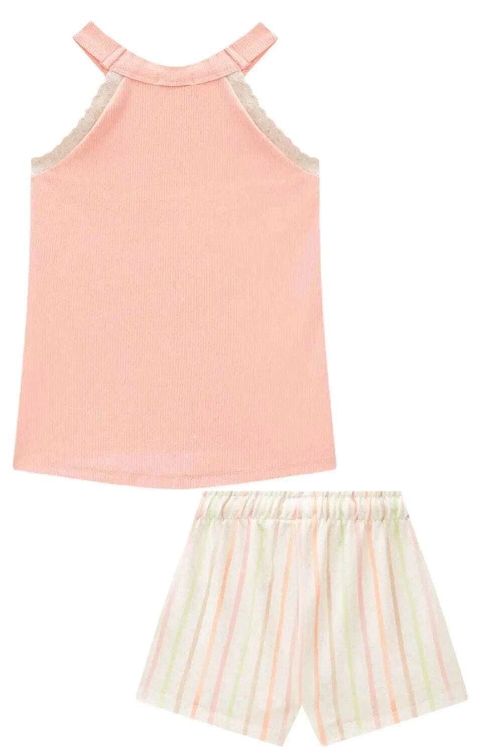 O conjunto de blusa regata em canelado liz e shorts em molecotton, é uma peça delicada e cheia de charme, perfeita para as meninas que amam estilo e conforto em uma peça só! Disponível em uma cor super estilosa - rosa - ele oferece um toque super macio e confortável, ideal para o dia a dia! A sublimação divertida
