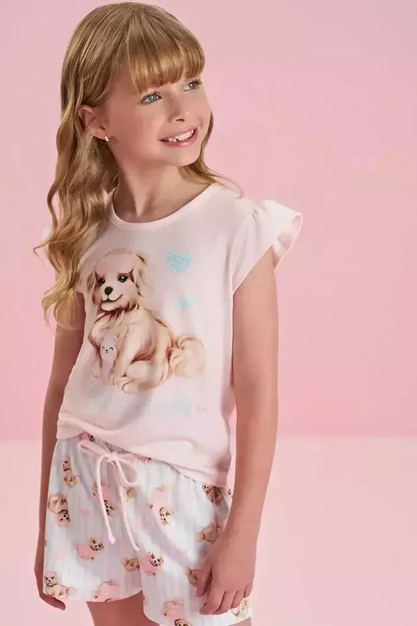 O conjunto de pijama de blusa em malha fresh e shorts em malha comfy, transforma a hora de dormir da sua pequena em um momento ainda mais aconchegante e encantador. Disponível em uma cor super estilosa - rosa - ele proporciona ainda mais conforto para a noite de sono das garotas. Este conjunto é perfeito para as pequenas que amam doçura e conforto durante o sono. A sublimação divertida e o strass, adicionam um charme especial à peça.